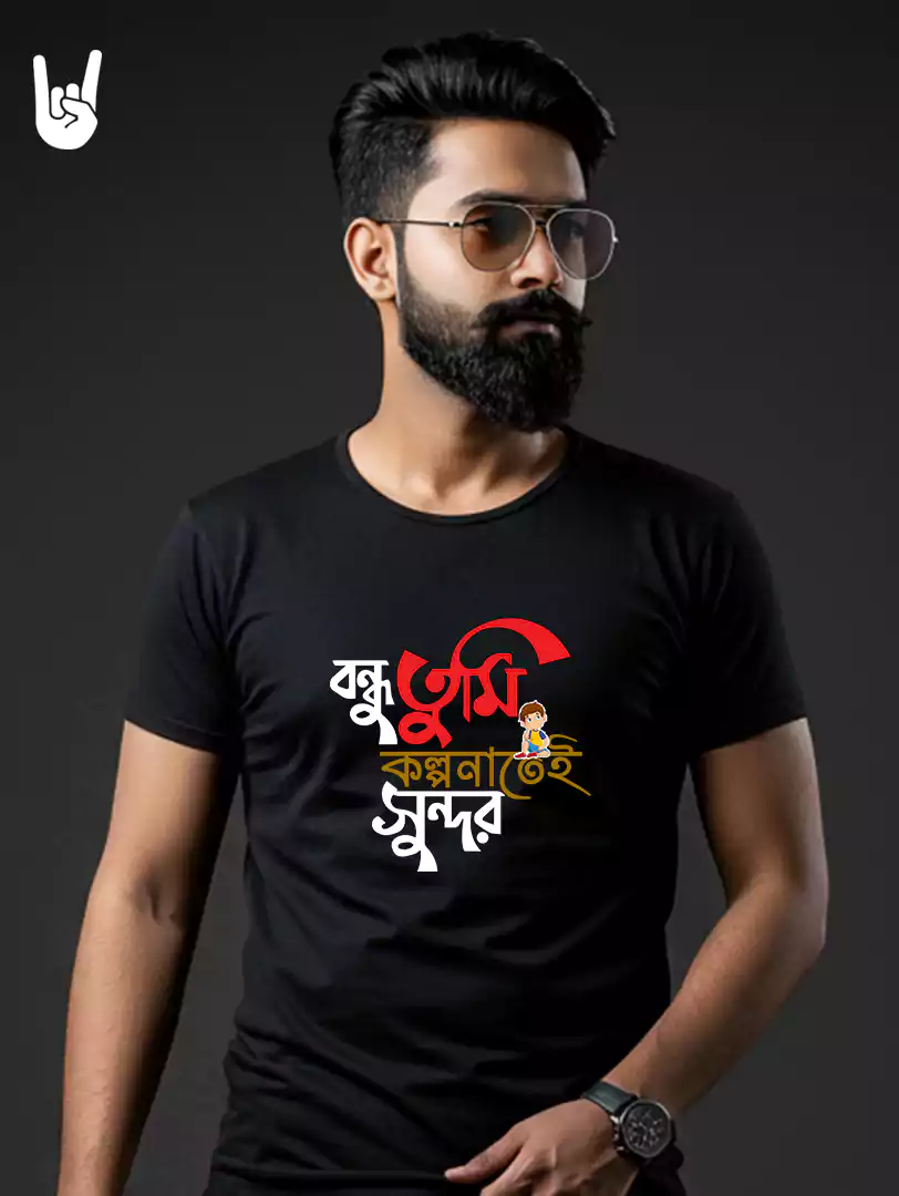 Celebrate Bengali emotion and nostalgia with our Bondhu Tumi Kolponatei Sundor Bengali typography t-shirt. Designed for those who connect deeply with meaningful Bengali quotes, this t-shirt reflects culture, simplicity and timeless style.